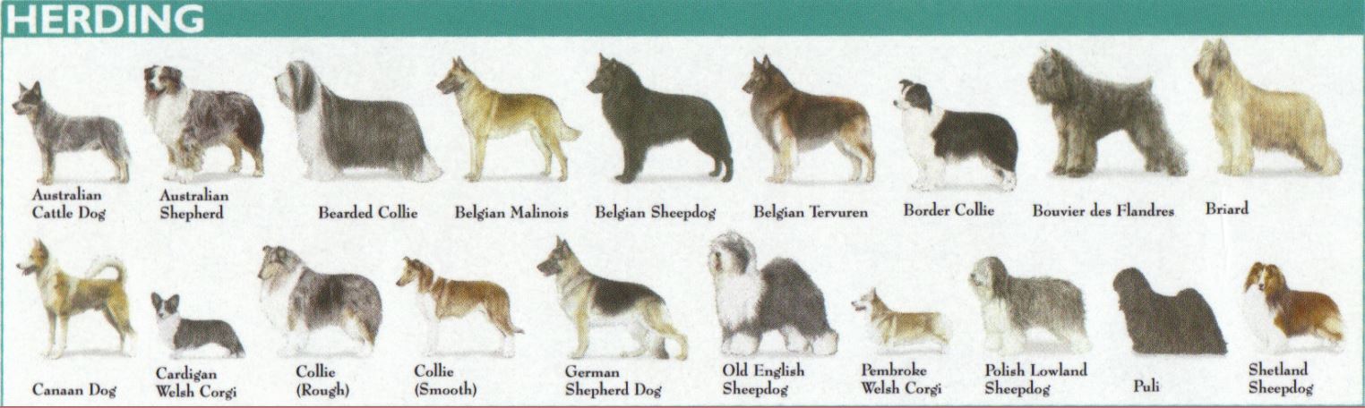 The Herding Group, created in 1983, is the newest AKC classification; its members were formerly members of the Working Group. All breeds share the fabulous ability to control the movement of other animals. A remarkable example is the low-set Corgi, perhaps one foot tall at the shoulders, that can drive a herd of cows many times its size to pasture by leaping and nipping at their heels. The vast majority of Herding dogs, as household pets, never cross paths with a farm animal.