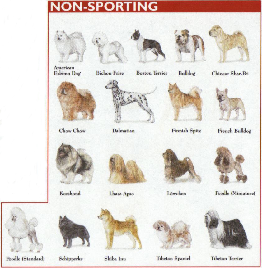 This is the catchall group for breeds that didn't seem to fit in elsewhere, from the cuddly Bichon Frise, a little too big to be considered a toy, to the striking Dalmatian and the stunning but difficult Chow Chow. Their individual skills, original purposes and temperaments are almost as varied as their origins. The poodle is by far the most popular of the non-sporting breeds.