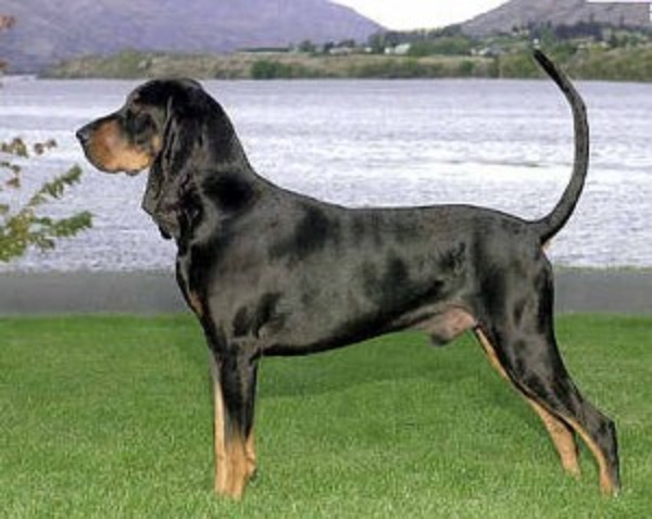 The Black and Tan Coonhound is descended from the Talbot Hound, found in medieval England after the eleventh century. Its ancestry is then traced through the Bloodhound and the Foxhound to the Black and Tan Virginia Foxhound.