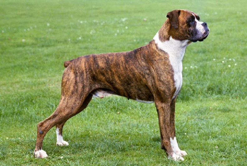 The Boxer is part of the Molosser dog group, developed in Germany in the late 19th century from the now extinct Bullenbeisser, a dog of Mastiff descent, and Bulldogs brought in from Great Britain.