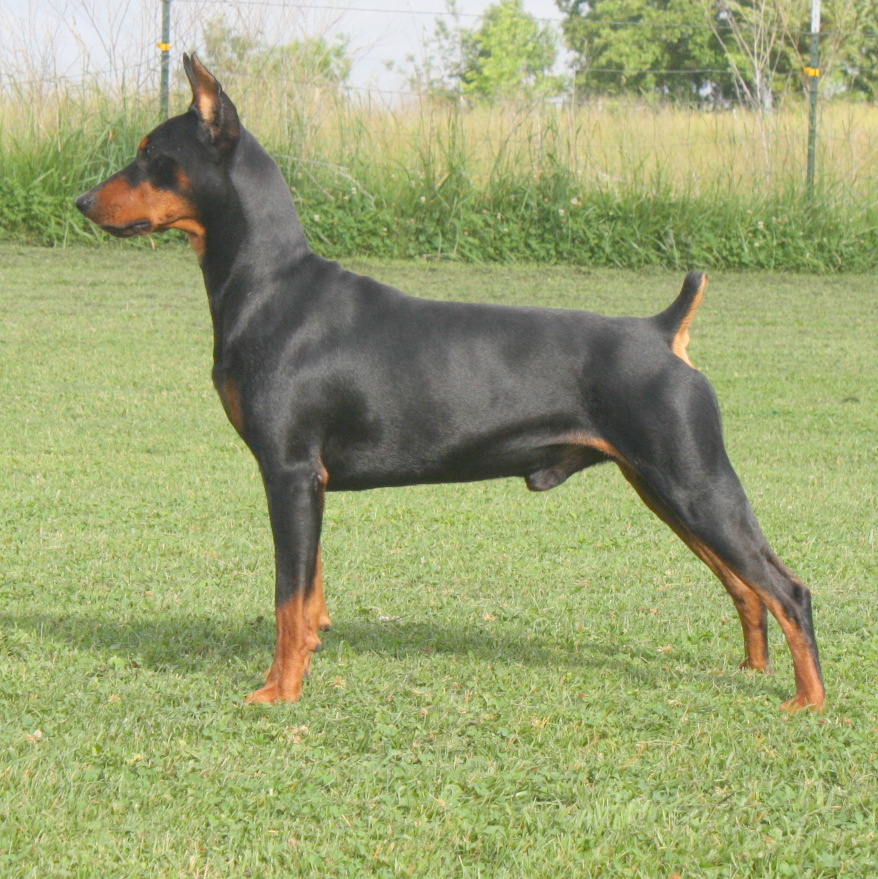 The German Pinscher gained full acceptance by the Canadian Kennel Club in 2000. The CKC named Ch Othello des Charmettes its first Champion on April 20, 2000. The German Pinscher gained full acceptance by the American Kennel Club in 2003. The AKC named Ch Riward's Rollin Rocs Rusty (Jambo de la Capelliere x Windamir's Zarra) its first Champion on January 8, 2003.